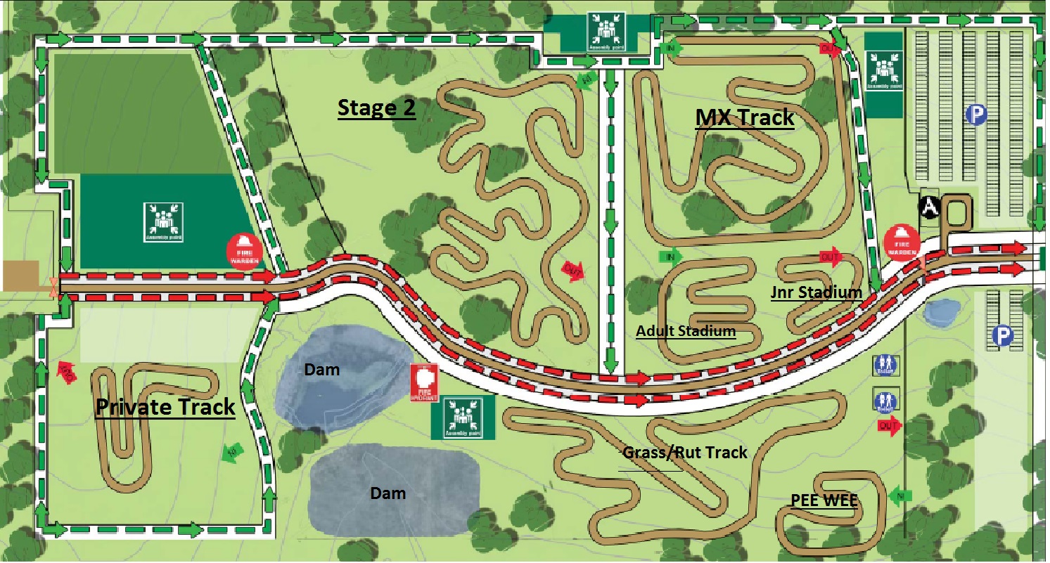Across the property, we currently have a pee -wee track, Jnr Stadium, Adult Stadium and a MX Track. We recently put in a 1km Grass/Rut track which is great for all levels of riding. We have plans for more once we know what you guys want to ride on. Will it be Vintage? Trials or Endurance ? Make sure you let us know what you want us to build. All feedback welcome.